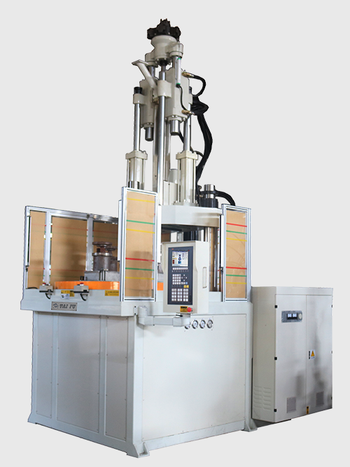 立式鎖模,立式射出,四工位(120度旋轉(zhuǎn))圓盤注塑機(jī)。