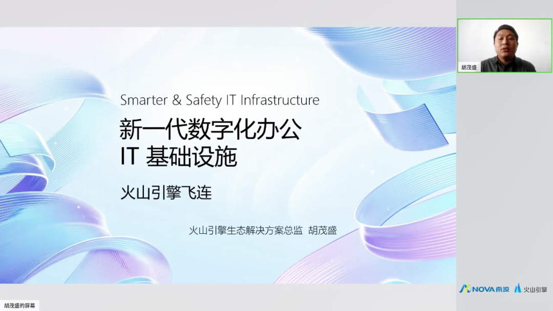 火山引擎生態解決方案總監胡茂盛,首先為大家帶來了《新一代數字化辦公IT基礎設施》的分享,在他看來,企業數字化辦公基礎設施正邁入平臺化、融合化發展階段。