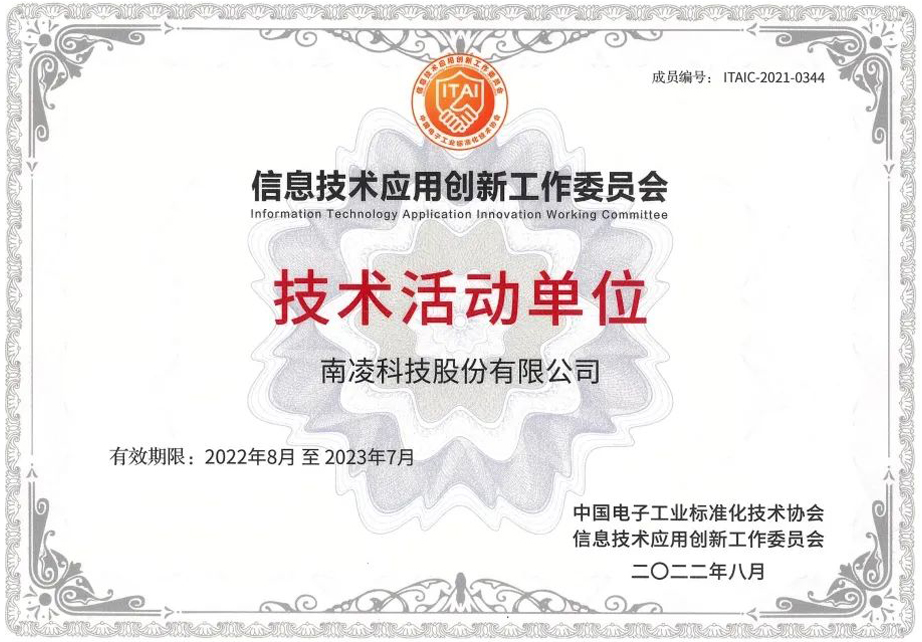 近日,南凌科技收到中國電子工業標準化技術協會信息技術應用創新工作委員會(以下簡稱“信創工委會”)頒發的技術活動單位證書。