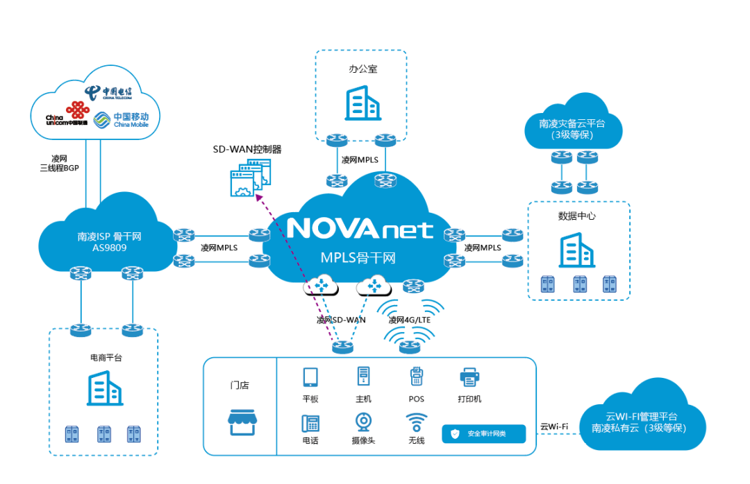 南凌科技“凌網云+”采用技術基于SD-WAN的廣域網優化方案,快速部署管理的企業網絡。自動化網絡部署和管理,虛擬化資源,以提高性能、加速服務交付并提高可用性。建立穩定的基礎網絡,為供應鏈環節中數據傳輸提供保障。打通廣域網與局域網的管理界面,協助管理所有區域門店IT設施,減少運維成本。是先進強大的一站式網絡連接方案,也是零售行業跨地域連接的絕佳選擇。