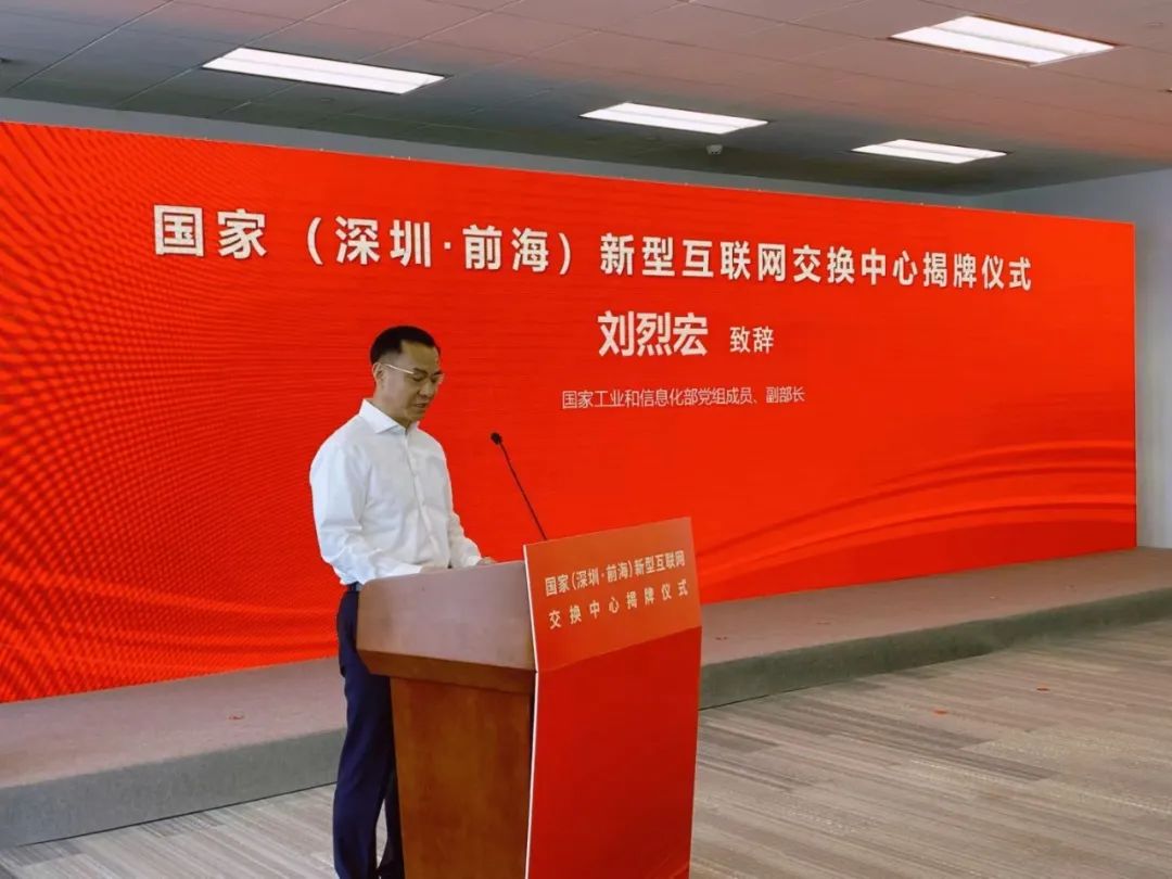 4月14日,國家(深圳·前海)新型互聯網交換中心揭牌儀式在深圳前海舉行。工業和信息化部副部長劉烈宏,深圳市委常委、市政府黨組成員、前海合作區黨工委書記黃敏等相關領導出席儀式并為國家(深圳·前海)新型互聯網交換中心揭牌。深圳市市場監督管理局局長李忠現場向深圳市前海新型互聯網交換中心有限公司頒發了營業執照。