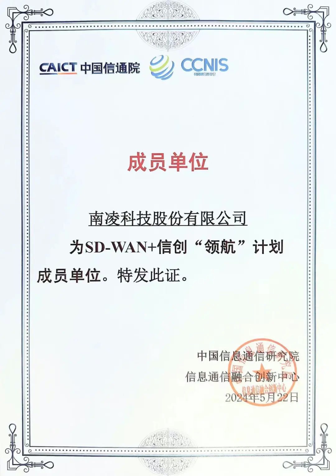 作為 SD-WAN領(lǐng)導(dǎo)廠商,南凌科技應(yīng)邀參會(huì),并成為 SD-WAN + 信創(chuàng)“領(lǐng)航”計(jì)劃成員單位。
