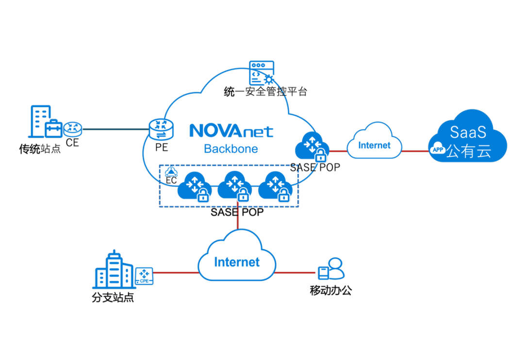 南凌科技擁有豐富的骨干網資源以及邊緣云資源,可以在靠近用戶的地方快速部署SASE服務節點。同時,公司SD-WAN控制器,已經平滑升級為SASE控制器。